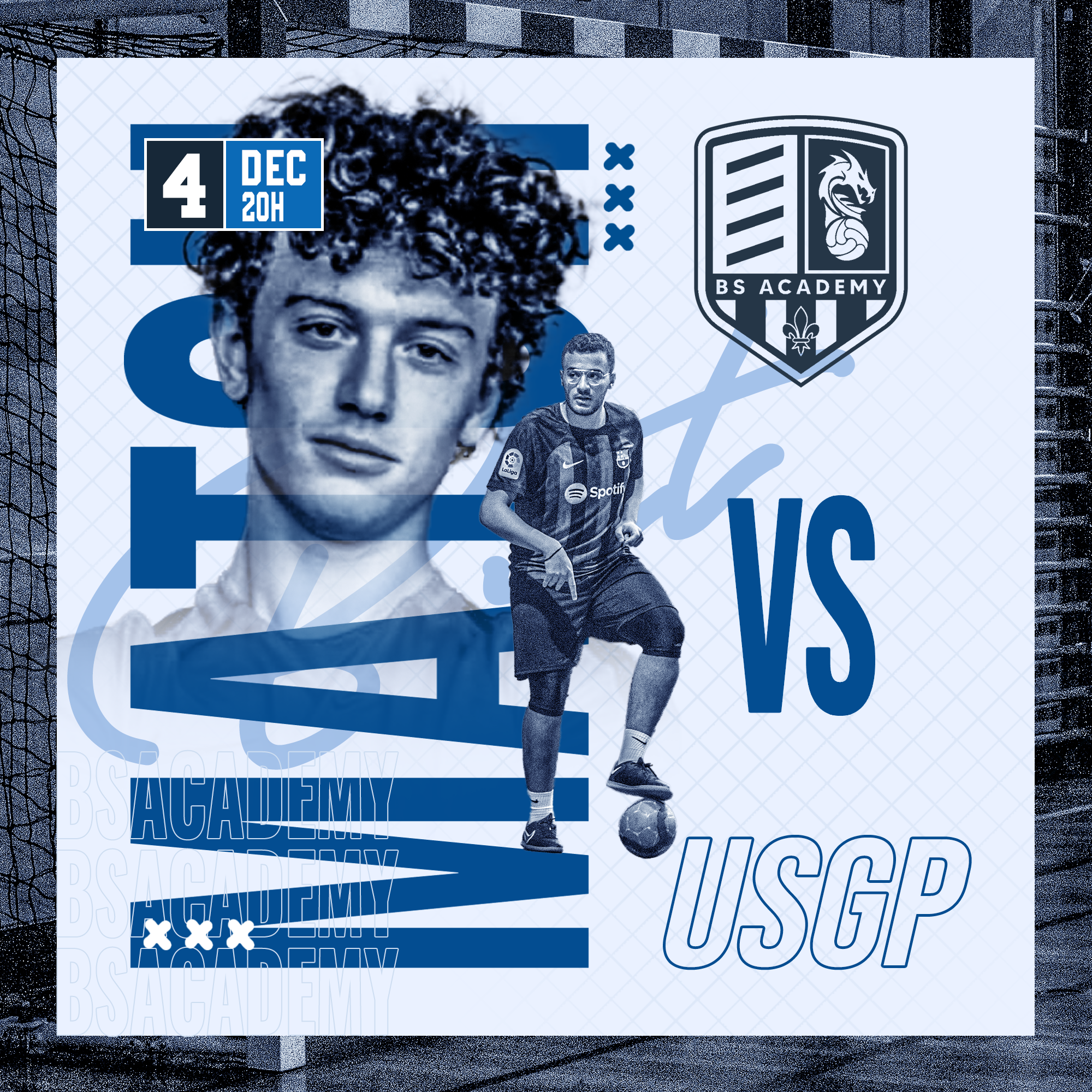J'ai eu l'opportunité de concevoir plusieurs affiches pour les matchs cruciaux de la BS Academy, club de Futsal basé à Chelles (77), évoluant désormais en régional 3. En outre, j'ai également réalisé des miniatures YouTube pour la série retracant le parcours du club.
