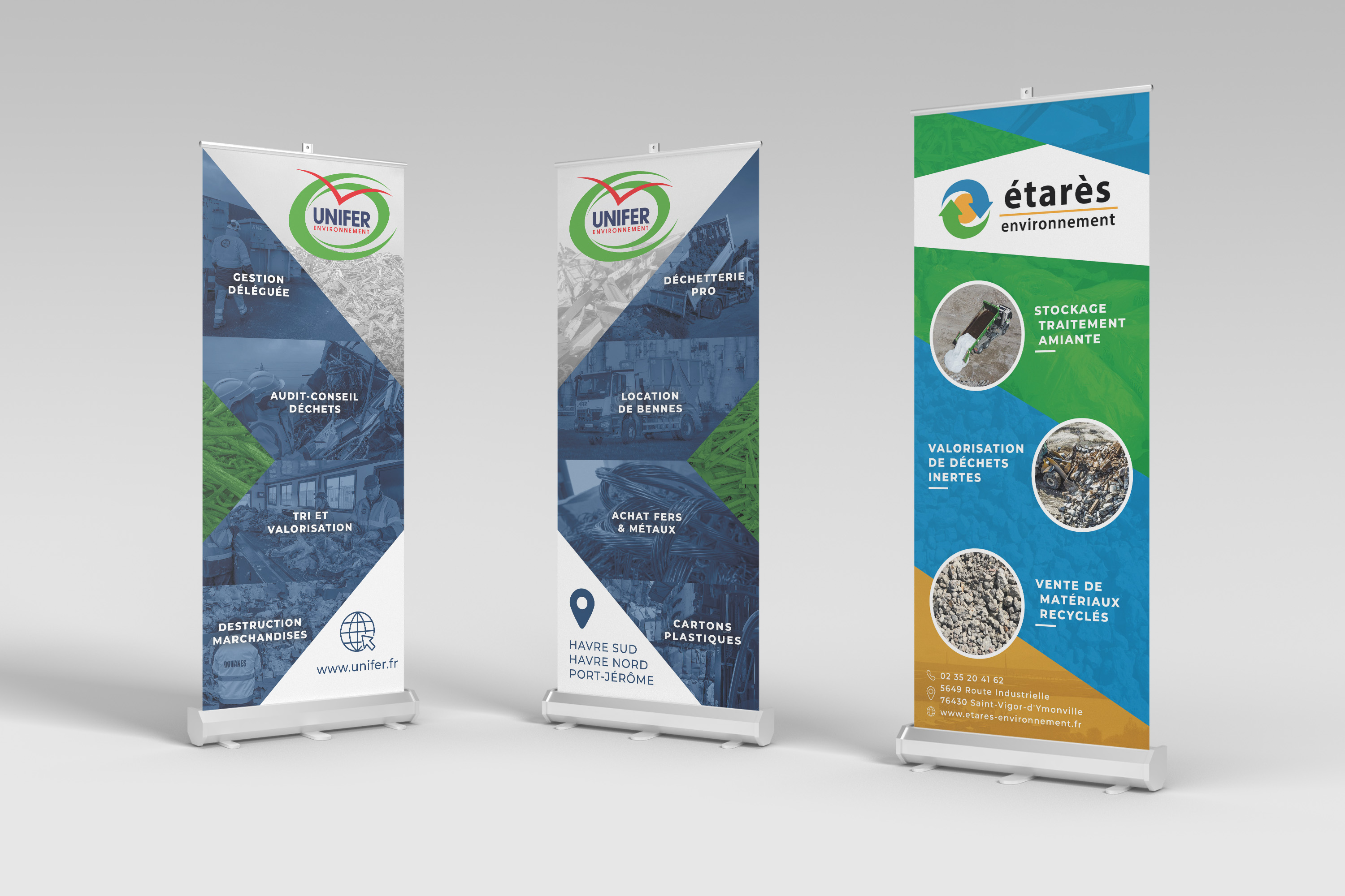Durant mon stage chez Unifer Environnement, j'ai conçu plusieurs affiches pour des événements et des annonces, ainsi que des supports de communication tels que des kakémonos. Une expérience stimulante où j'ai pu exprimer ma créativité et contribuer à la visibilité de l'entreprise.