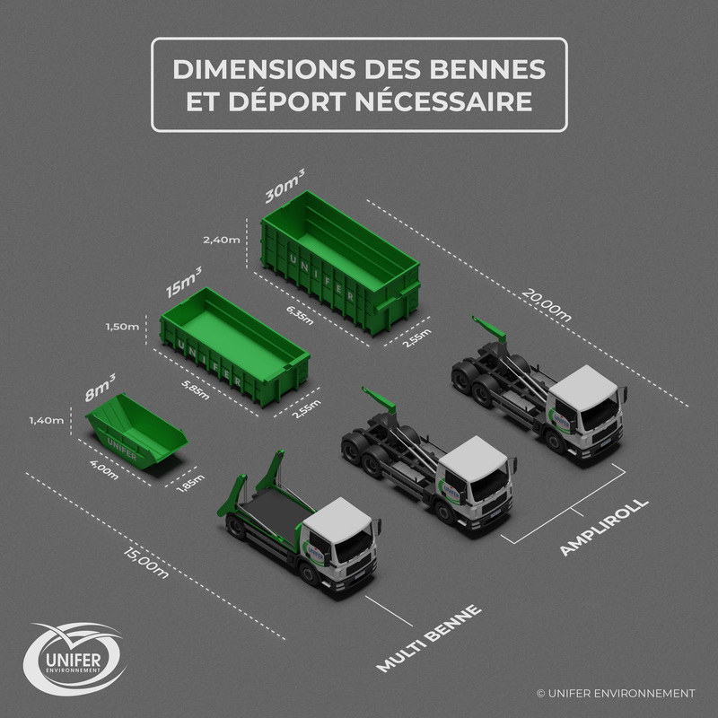 Pendant mon stage chez Unifer Environnement, j'ai modélisé diverses bennes pour les visuels de communication et les plaquettes commerciales. Une expérience enrichissante où j'ai mis mes compétences en modélisation au service des besoins commerciaux et de communication.