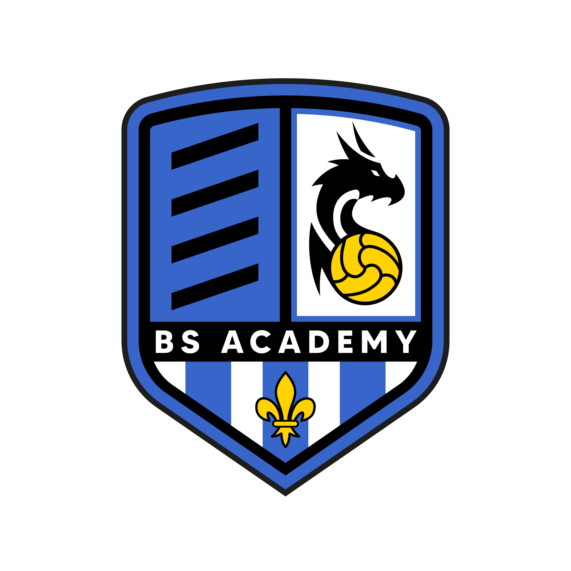 Voici les réalisations ne faisant pas partie d’un réel projet. D’abord un t-shirt avec un visuel de plusieurs terrains de basket-ball en collage. Puis le logo de la « BS Académie » (club de futsal) que j’ai refait au propre. Enfin une proposition de logo pour un club du Football amateur.
