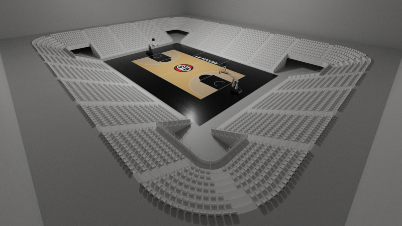Pour me perfectionner sur le logiciel Blender, j'ai décidé de modéliser la salle des Docks Océane au Havre en essayant d'être le plus fidèle à la réalité. Ce n'est pas terminé, mais je suis plutôt content de certains détails comme le panier, par exemple, et la texture du parquet.